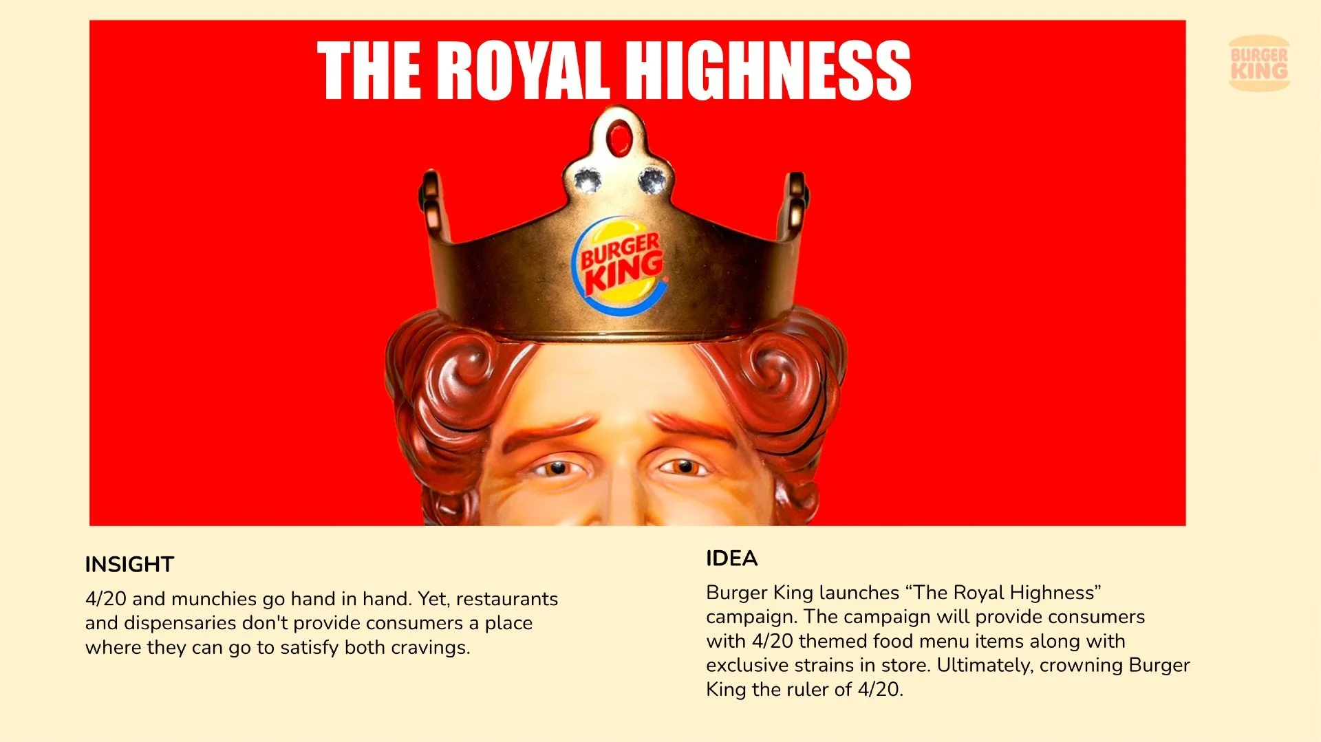 Solution: Burger King rules 4/20 with the “Royal Highness” experience.