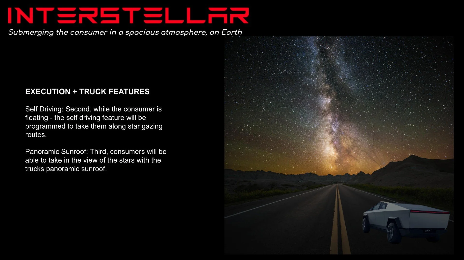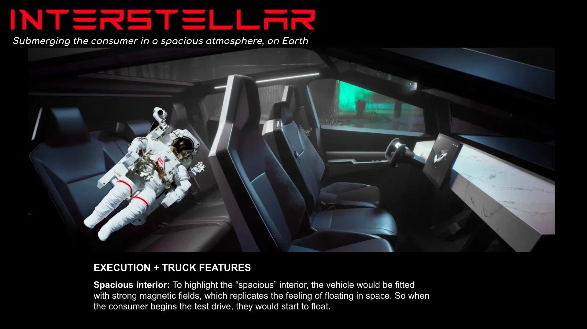 Solution: Tesla submerges consumers in a spacious atmosphere on earth…. in a Cybertruck.